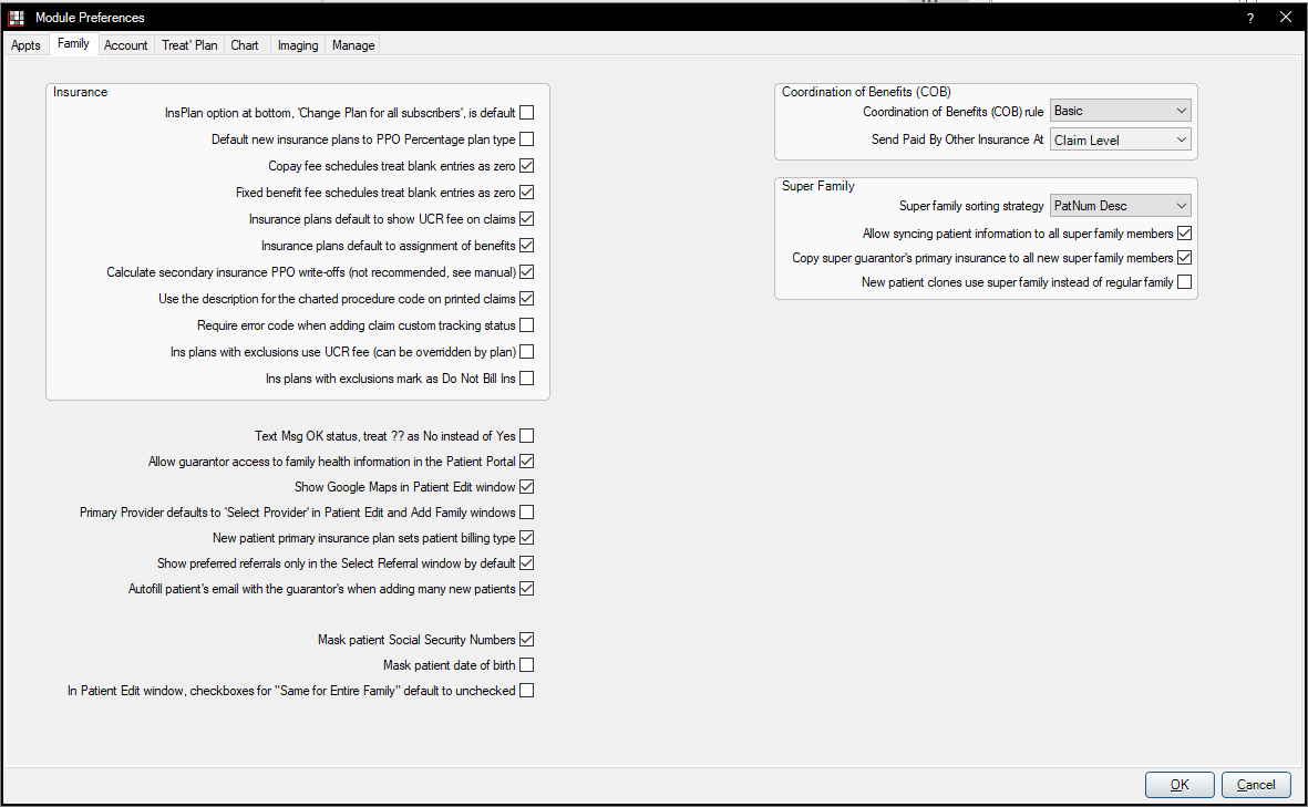 From within the Family Tab, to the right of 'Coordination of Benefits (COB) Rule', click on the down arrow and select the Default of Basic, Standard, or Carve Out.