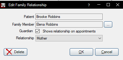 Contact: This selection is informational and appears in bold in the Patient Information area of the Family Module. It's used to denote how your team should reach the patient for general communications, such as questions or billing-related communications.