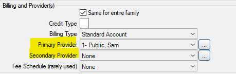 The Billing and Provider(s) section is usually managed at a family level, so "Same for the entire family" is usually checked and edits made to one family member are carried over to other family members. The box can be unchecked if an individual family member has information specific to him or her.