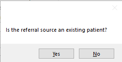 Choose "Yes" to select the patient from your patient list. Choose "No" to choose a referral source from the Referrals List or add a new referral source.